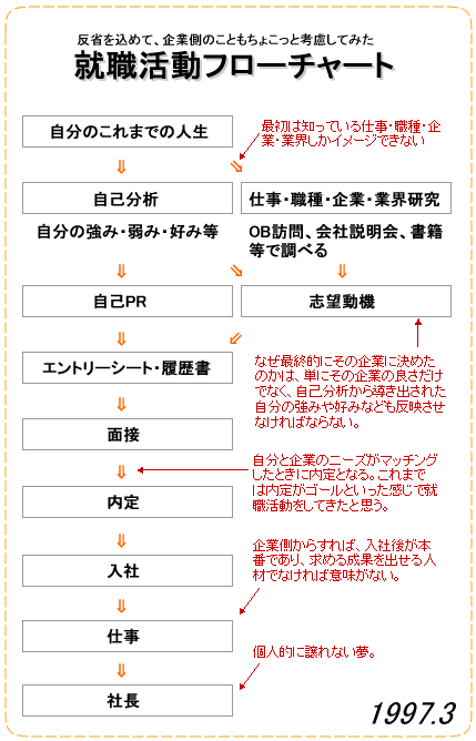 さらに、就職活動の全体像を「反省した点も含めて」簡単なチャート(図表)にしてみました。
